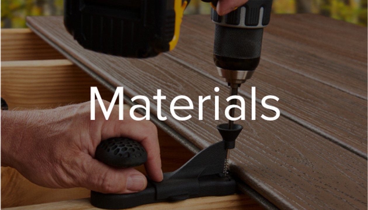 Gather the Trex® decking and materials needed for your DIY build, including your Trex Hideaway® Hidden Fasteners and railing.