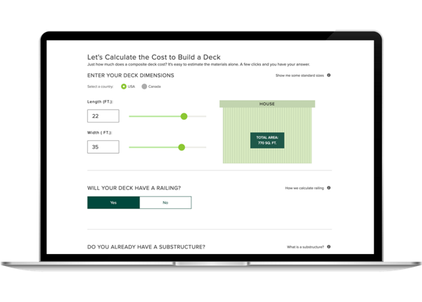 \n\r\n*Average price range excludes Trex Signature® decking, our luxury decking collection. Trex actual material costs and install costs can and will vary based on geographic area, site location, seasonality, design complexity, whether the product is stocked locally, and additional features such as stairs, angles, curves, lighting, etc. For most professionally installed projects, materials constitute up to one third of the total cost. \r\n"}" data-sheets-userformat="{"2":963,"3":{"1":0},"4":{"1":2,"2":16773836},"9":0,"10":0,"11":4,"12":0}" data-sheets-textstyleruns="{"1":0}{"1":345,"2":{"6":1}}{"1":778}">On average, the estimated material cost for a composite deck runs from $15 - $30 per square foot (including substructure, decking, hardware and fasteners).* We recommend using our online cost calculator tool and guide to get an estimate for your project's cost. For a true cost estimate, reach out to a Trex retailer or TrexPro deck builder.