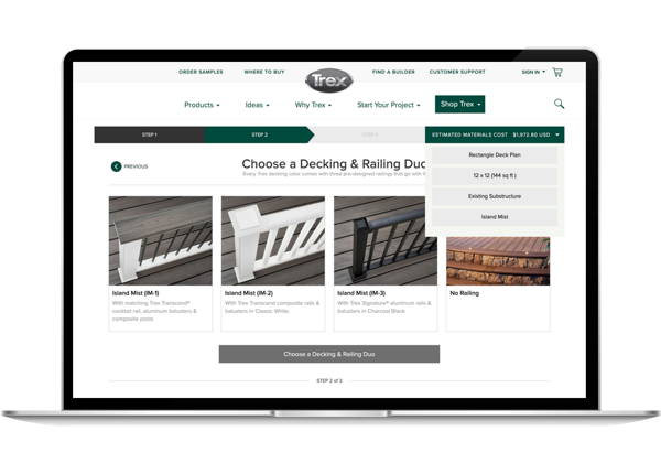 *Average price range excludes Trex Signature® decking, our luxury decking collection. Trex actual material costs and install costs can and will vary based on geographic area, site location, seasonality, design complexity, whether the product is stocked locally, and additional features such as stairs, angles, curves, lighting, etc. For most professionally installed projects, materials constitute up to one third of the total cost.