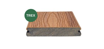 Trex composite decking is made from 95% recycled plastic film and reclaimed sawdust.